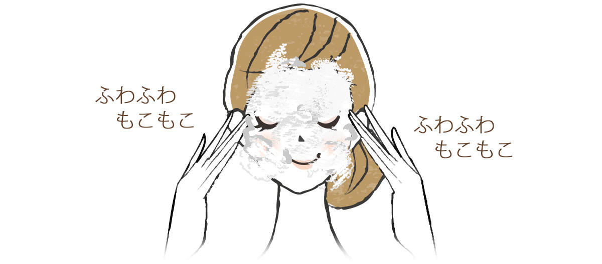 - ゴシゴシ洗いはせず、泡の弾力でやさしく転がすようにお顔全体を洗ってください。