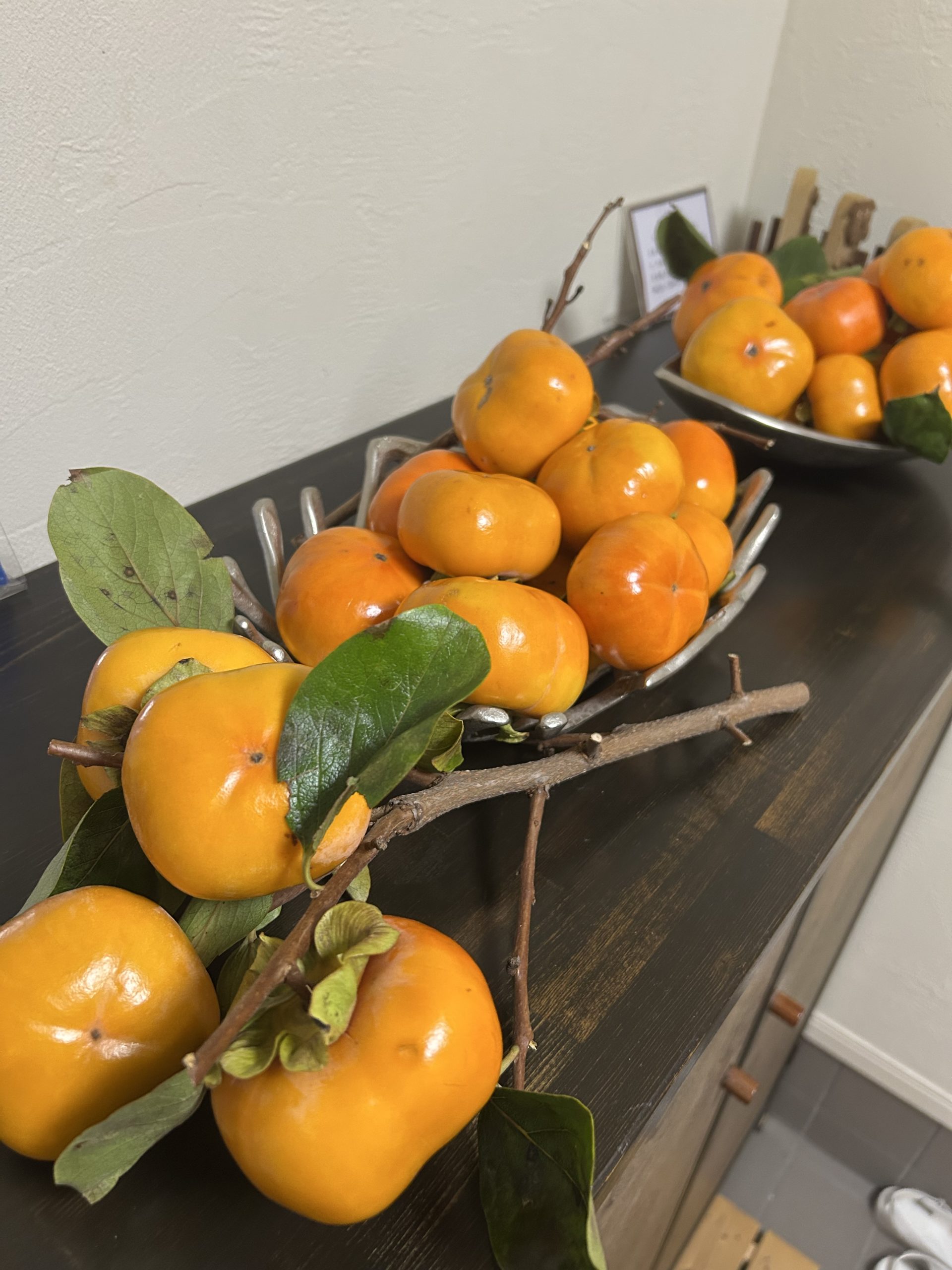 群馬から柿が大量に届きました😍(段ボールに2箱、約300個)